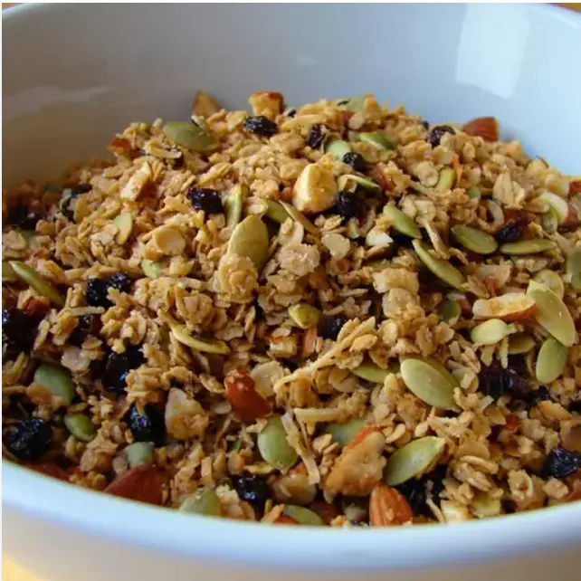 This homemade granola is healthy and delicious! It is high in potassium and healthy fats. The pumpkin and sunflower seeds are hormone balancing, and the rolled oats provide resistant starch for the gut. Add dried cranberries or cherries if you'd like!