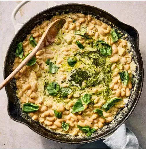 Try this creamy, filling high protein dish tonight! It is high protein with quality fats. The beans offer resistant starch which is very beneficial for your gut!